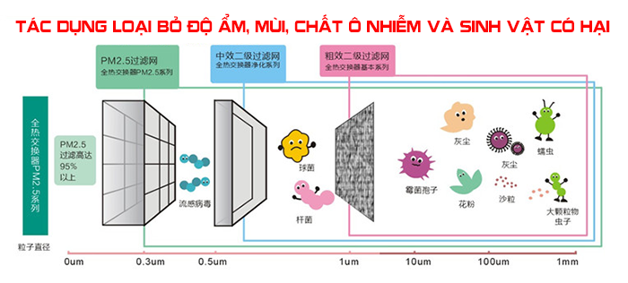 – Loại bỏ độ ẩm, mùi và chất ô nhiễm bên trong toà nhà mà vẫn bảo toàn năng lượng và tăng cường sự thoải mái.