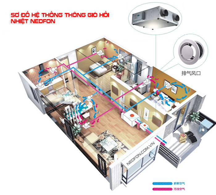 – Quạt thông gió hồi nhiệt nedfon QFA với dung lượng dưới 2000m3/h thường áp dụng cho các hộ gia đình.